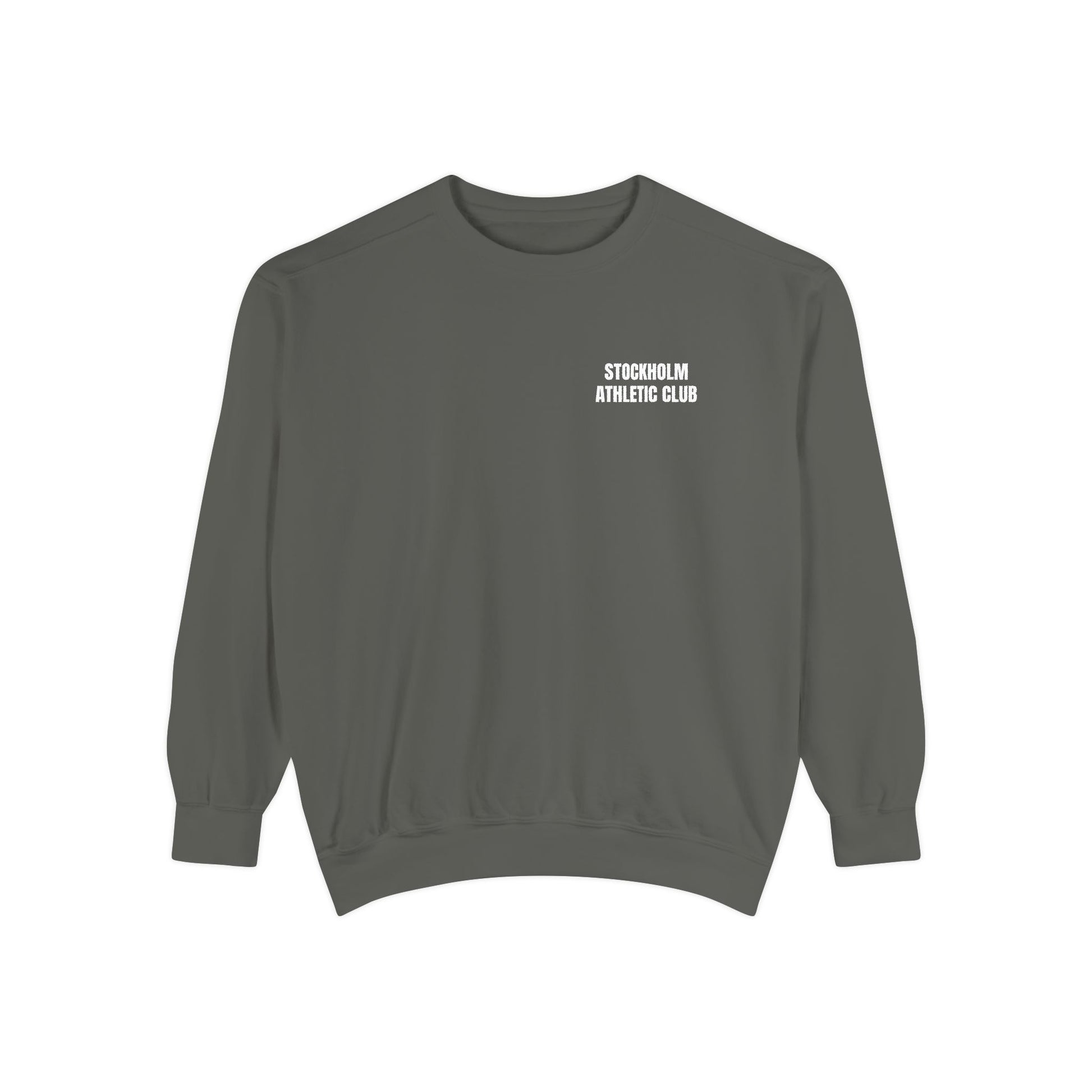 Embrace effortless unisex Scandinavian style with our Stockholm Athletic Club Crewneck, designed for those who appreciate both aesthetics and sustainability. Crafted from 100% ethically grown and harvested US cotton, this tee offers a soft, comfortable fit that only gets better with time.Featuring a classic vintage look, the print develops a unique patina after a few washes, adding a personalized touch to your wardrobe. Whether you’re heading to the gym or lounging on the weekend, this Crewneck brings a timeless, understated charm to any outfit. Celebrate quality, comfort, and conscious fashion with Stockholm Athletic Club. The pre-shrunk fabric ensures a consistently great fit.